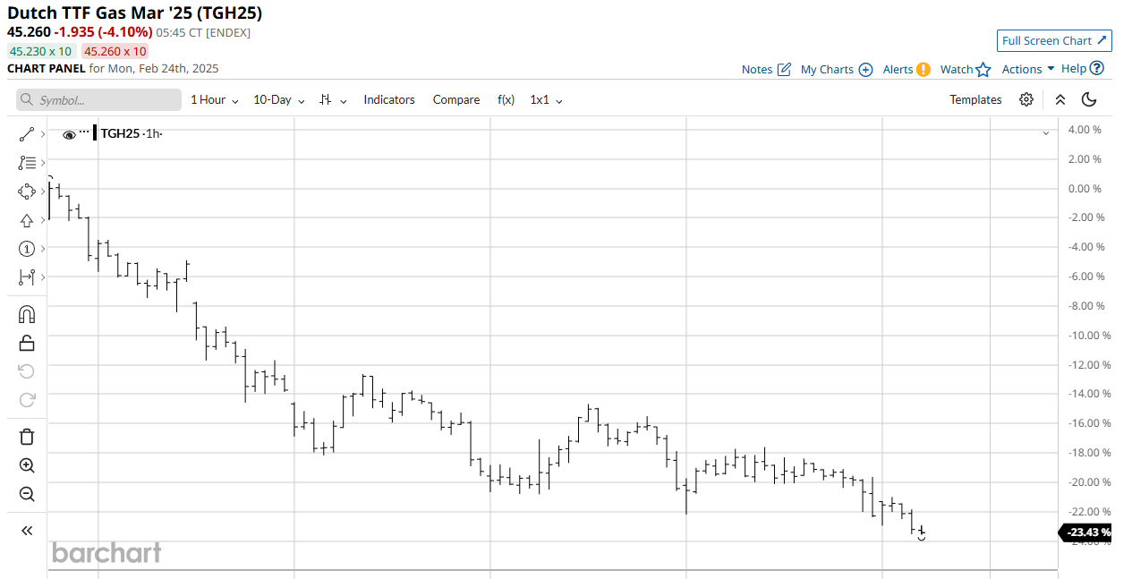 Hier mal wieder eine Auswirkung auf den Gas- und auch den Strompreis durch die möglichen Friedensgespräche: