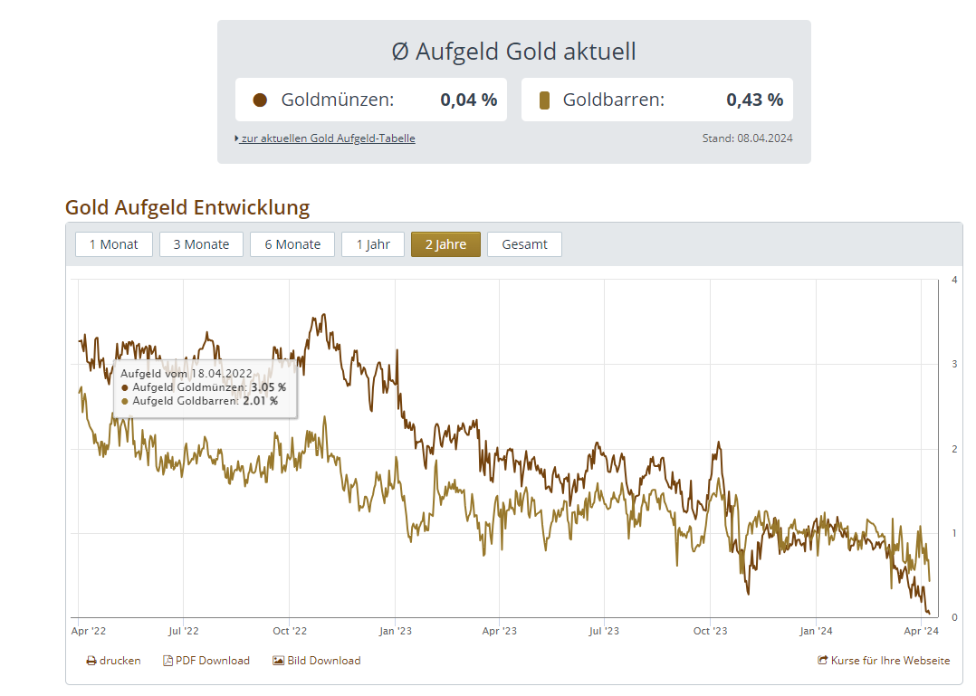 Aktuell sind die Aufgelder so gering wie noch nie ![]()