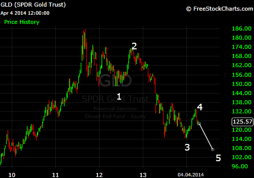 Grundsätzlich nichts Neues. Man muss kein Guru in Elliott waves sein, um zu sehen, dass eine 5. Welle nach unten das Bild harmonischer machen würde..... Guckst du chart GLD.