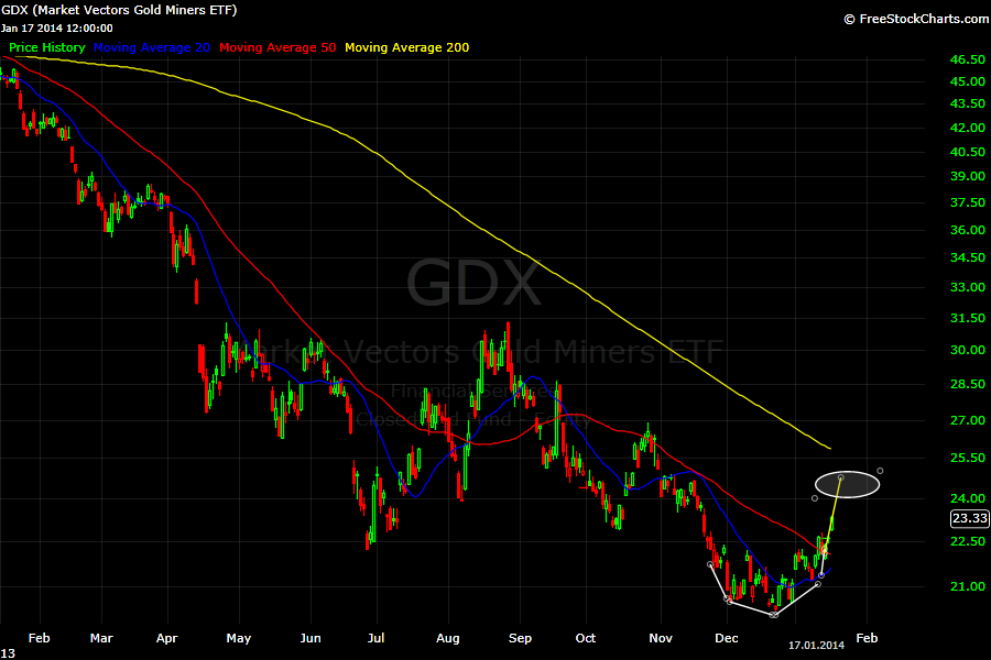 Die konservativeren Ziele für diesen Move nahen, doch es spricht nicht viel dagegen, dass bis in den Bereich 24 bis 24.50$ beim GDX vorgestossen werden kann. Aber dann würde ich eine heftigere Reaktion erwarten, die schlimmstenfalls zur Wiederaufnahme des Bärenmarktes führen kann.... aber natürlich nicht muss.