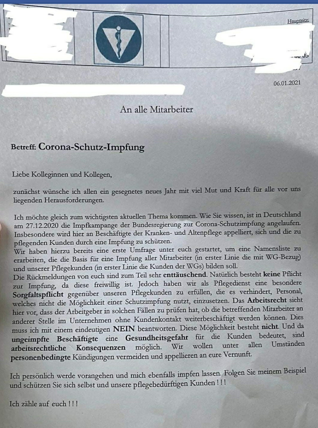 Habe im Lokus gelesen, dass Pflegekräfte, die sich nicht impfen lassen, dann entlassen werden sollen.
