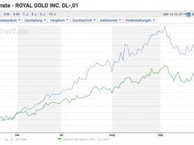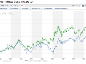 Ich denke, dass das vermutlich an der oben beschriebenen Ausrichtung liegen könnte und ein paar gute Explorer oftmals ein Eigenleben führen und sich gelegentlich relativ unabhängig vom Auf und Ab der Edelmetallpreise entwickeln. Daher auch mein grobes Grundgerüst: 55 % mittlere Produzenten, 25 % Explorer, 10 % Seniors, 10 % Royalties