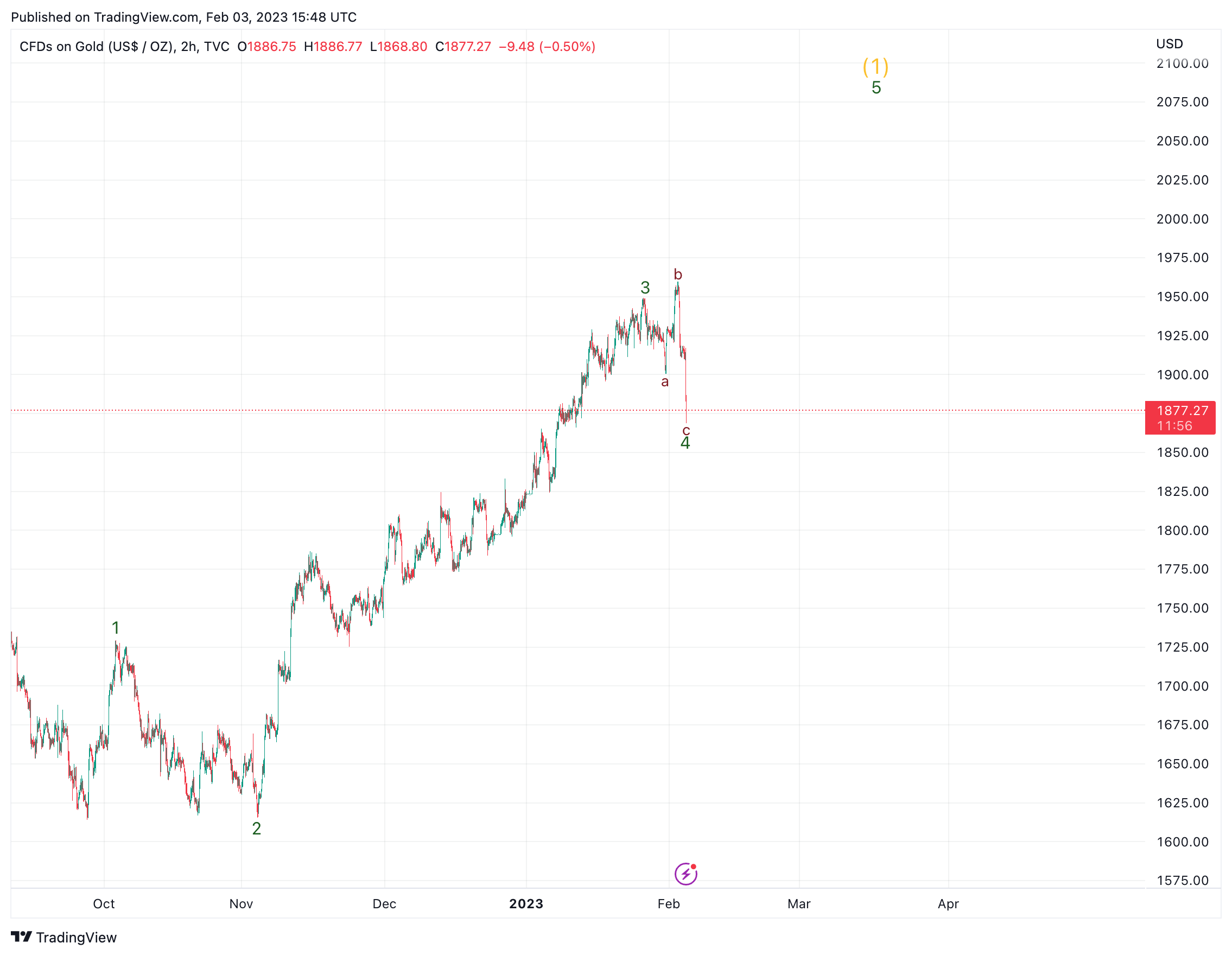 Das ist Welle 5 einer übergeordneten 1, die zunächst ungefähr bis zum ATH gehen sollte. (Hab ich mindestens schon 20 Mal oder so beschrieben. Allerdings ist das bereits ein paar Monate her)