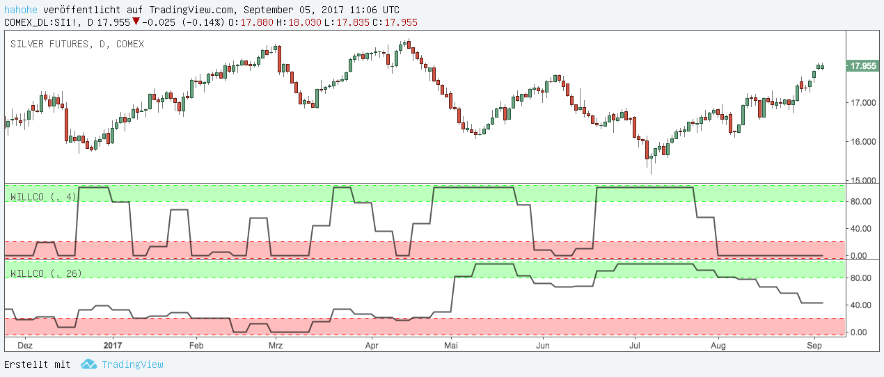 über Tradingview habe ich die COT-Daten laufen (4 Wochen und 26 Wochen Einstellung)