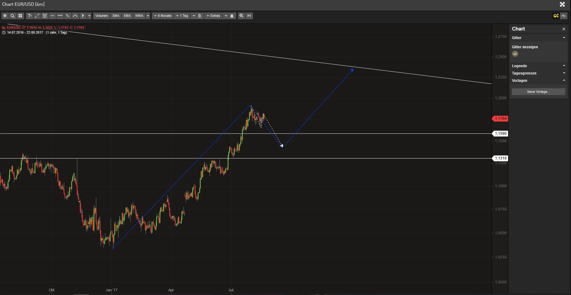 Bin eher der Überlegung EUR/USD nochmal rein short ... meine anderen sind mit SL raus .. könnte nun tiefer einkaufen ... aktuell ist der abwärtstrend seit Anfang august in takt .. wenns jetzt wieder drehen sollte