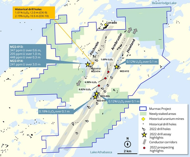 Mr. Verran further added, "The positive results from our 2022 drilling and prospecting programs have validated the endowment of uranium at Murmac and support the potential for a high-grade discovery. The expanded Project provides significant additional discovery potential along corridors which have been identified as being prospective for high-grade uranium."