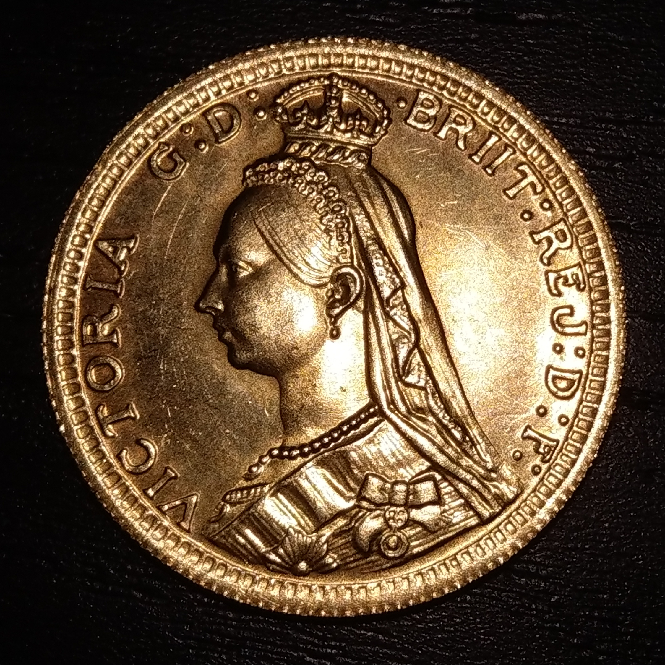 ich habe bei einem Händler vie Internet Sovereigns bestellt. Bei der Lieferung war u. a. die im Anhang abgebildete Münze enthalten. Was auffällt ist, dass die Jahreszahl nicht in Victorias Regentschaft fällt.
