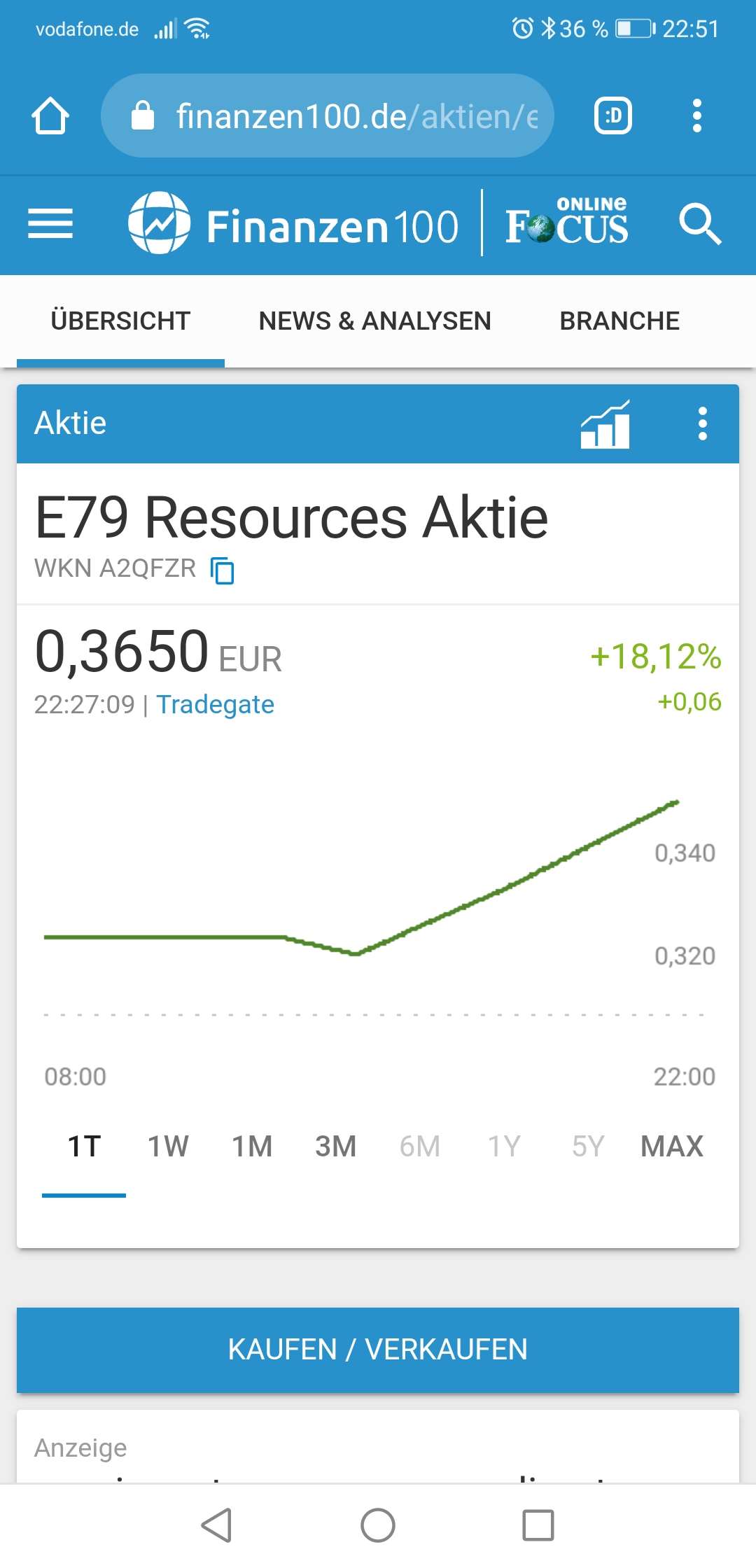 Ich hatte ne fette verkaufs Order bei 0,54 gesetzt die leider nicht erreicht wurden, so habe ich dann beim Kurs Rückgang um die 40 Cent gut 25% Verkauft und die letzten 2 Wochen wieder voll Eingesammelt.
