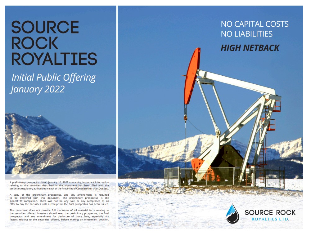 Source Rock is a pure-play oil and gas royalty company with an existing, light oil focused portfolio of royalty interests concentrated in southeast Saskatchewan, east-central Alberta, west-central Alberta and west-central Saskatchewan. Source Rock targets a balanced growth and yield business model, using funds from operations to pursue accretive royalty acquisitions and to pay dividends. By leveraging its niche industry relationships, Source Rock identifies and acquires both existing royalty interests and newly created royalties through collaboration with industry partners. Source Rock's strategy is premised on maintaining a low-cost corporate structure and achieving a sustainable and scalable business, measured by growing funds from operations per share and maintaining a strong netback on its royalty production.