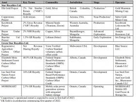 Update on Copper and Gold Royalty Revenues
