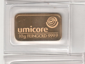 Mein 50g Barren sieht vom Design genauso aus wie dein 10g Barren, beim dem der Schriftzug "10g FEINGOLD 999.9" etwas nach rechts vom Anfang der Linie verschoben ist. Wann hast du den denn gekauft ?