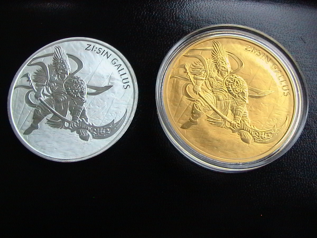 GALLUS ist ein Bote des Lichts, der so hell wie die Sonne ist. Die Dämonen von der dunklen Seite werden sofort verschwinden, sobald sie das helle Licht sehen und das laute Kampfgeschrei von GALLUS hören. Der prächtige, spitz zulaufende Helm ermöglicht es GALLUS, die bevorstehenden Ereignisse vorherzusehen... “ Quelle : https://www.apmex.com/product/…1-oz-gold-zisin-gallus-bu