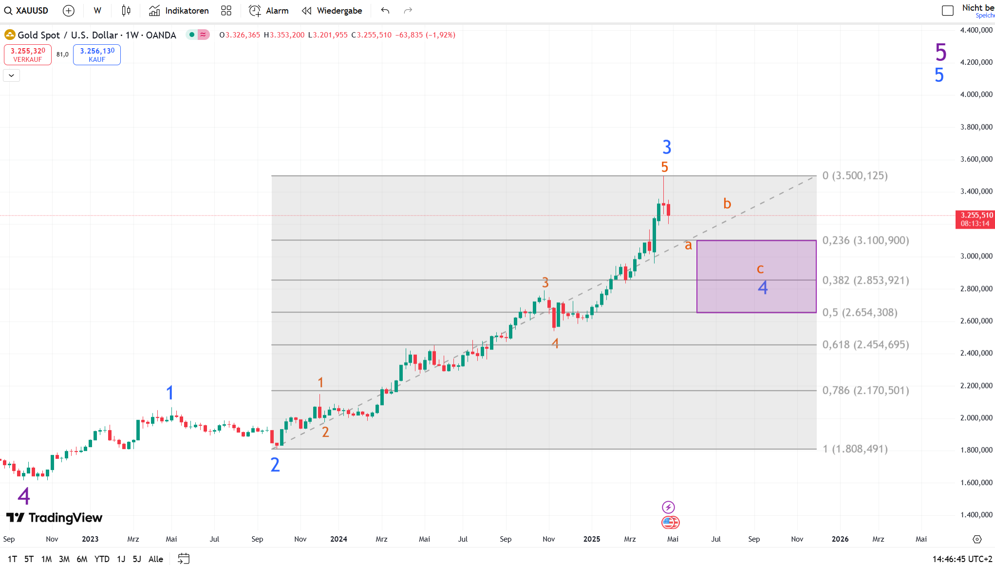 Wenn das Dreieck am Ende bei ca. 3.350 $ landet, ist alles ungefähr im Rahmen des Gesagten.