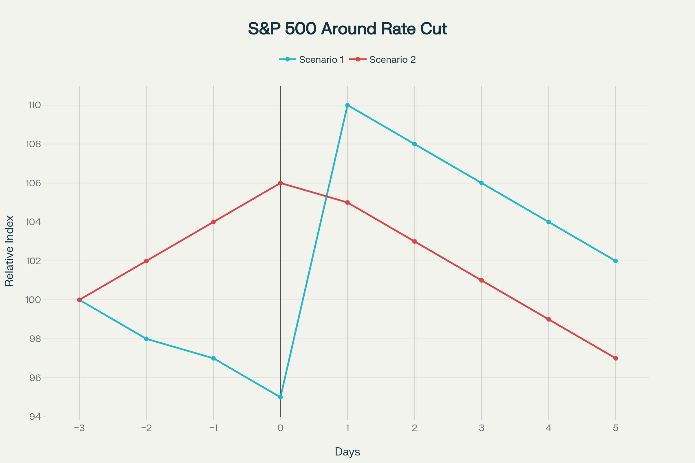 1. vorheriger Einbruch und anschl. Überschießen nach der Zinssenkung und späterer Abverkauf