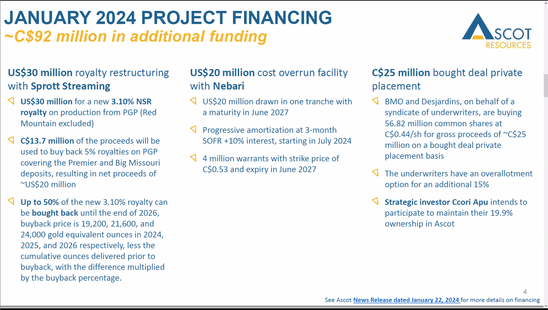 Aber damit ist Ascot wohl Übernahmekandidat numero Uno für die Nachbarschaft (Newmont?), ich meine, die haben eine von 3 Mühlen im Goldenen Dreieck, die alleine ist ja schon den Marktwert wert (laut Don Durrett macht z.B. die Mühle von West Red Lake z.B. 300Mio Wert aus), wenn sie die nicht füllen und rentabel laufen lassen können (wtf ist das, wie kann man die Anwerfen wenn man nicht genug Stoff hat), die Nachbarn können das bestimmt, bzw. haben die Mittel um die Minen von Ascot richtig zu erschließen, die haben da doch fast 3 Millionen Unzen, hochgradig, ich raffe das nicht so ganz, das kann ja nur ganz schlechtes Management sein.