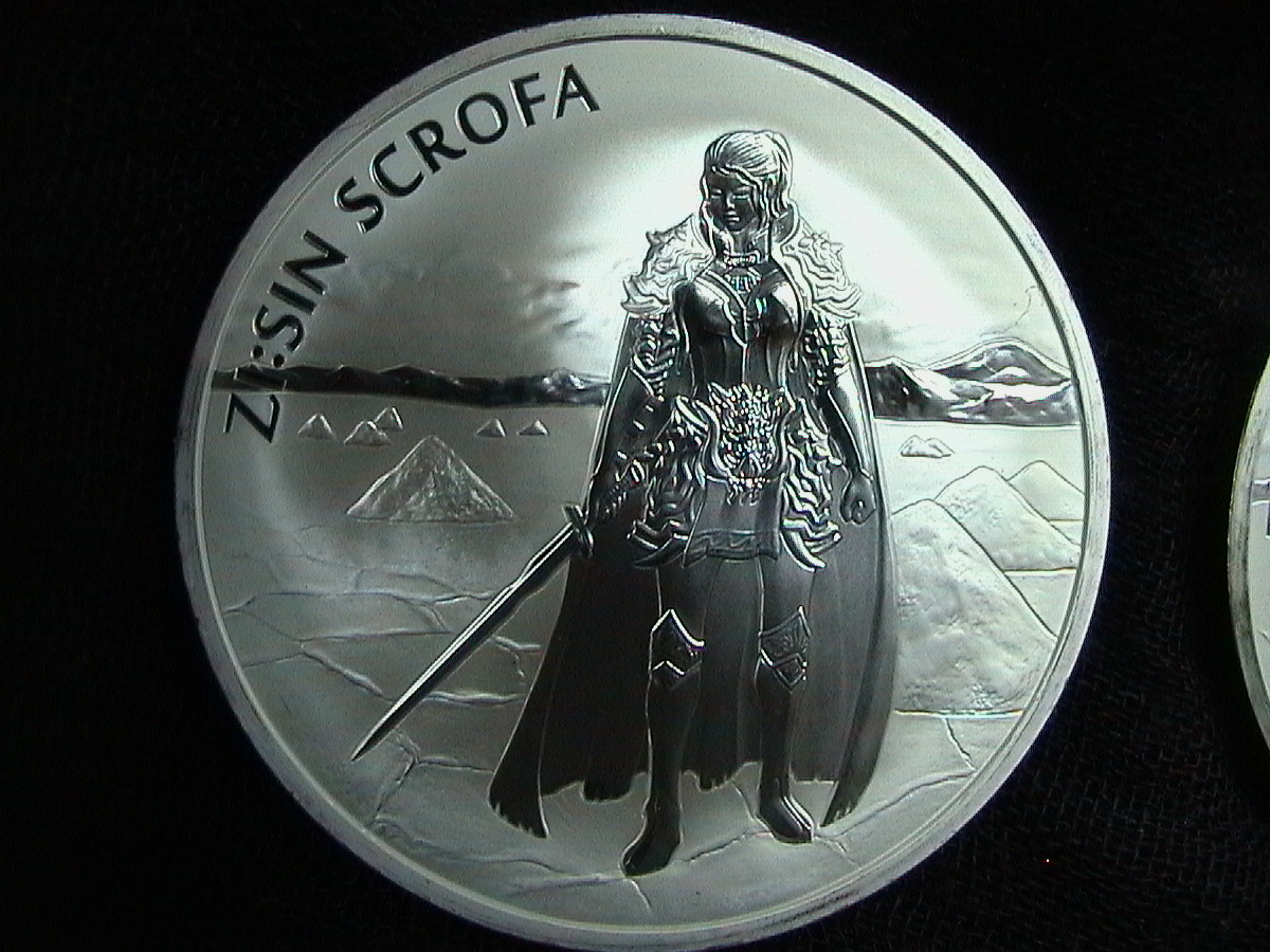 Oben ist die spezielle "Ghost" Edition abgebildet. Sie hebt Scrofas besondere Kraft hervor.Die ZI: SIN-Serie hat sich zu einer der beliebtesten Serien der Silbermedaillen entwickelt. Diese Medaille ist die 3. Veröffentlichung. ZI: SIN sind die 12 Wächter, die dazu dienen, die Welt aus zwölf Richtungen vor bösen Mächten zu schützen.Scrofa wurde als "Justice Haechi" bekannt. Sie ist dafür verantwortlich, den heiligen Salzsee zu schützen. Der Salzsee ist ein Ort, der zwei Welten zwischen Sterblichenund Unsterblichen verbindet. Es ist auch ein Ort, der Hoffnungen und Wünsche der Menschen erfüllt.