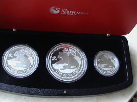 Ich beginne mit 2 neuen Serien aus Korea und Somalia. Es handelt sich um eine Silber Medaille aus Südkorea und eine Silbermünze aus Somalia mit einem Nominal i. H. v. 100 Schillings. Eine Agenturprägung des Bayerischen Hauptmünzamtes in Deutschland. Beides sind brandneue Serien, welche vergangenes Jahr auch in Gold mit einer Auflage von 2.018 ( Korea Tiger ) und 1.200 Stücken (Somalia Leopard) verausgabt wurden. Die Silbermünzen werden von den Prägestätten jeweils in Plastik Kapseln ausgeliefert. Die Plastikkapseln haben jeweils Griffmulden, um diese einfacher öffnen zu können. Die Korea Tiger Gold werden mit Box, Zertifikat und UVP geliefert. Die Gold Leoparden ausschließlich in Kapsel.