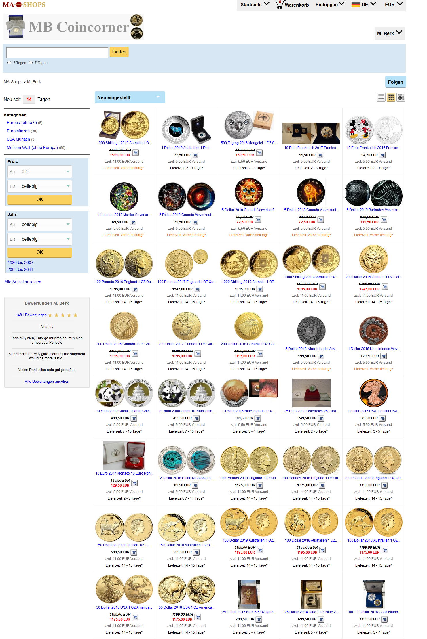 Naja, und wie ich schon früher erwähnte, hat der Kindskopf "goldie-goldie" nun tatsächlich seinen 2. Kauf vom 03.02.2019 mit dem selben Text neutral bewertet, obwohl er die Münze wahrscheinlich noch nicht mal bezahlt hat, geschweige erhalten, nur um weiter gegen MB Coincorner zu hetzen: goldseiten-forum.com/wcf/attachment/120746/ Noch ist sein falsches Spiel von Ebay nicht gelöscht worden, um 00:28, am 11.02.2019. ....aber denke mal, den Blödsinn wird MB sicher noch reklamieren. Gruß Thi