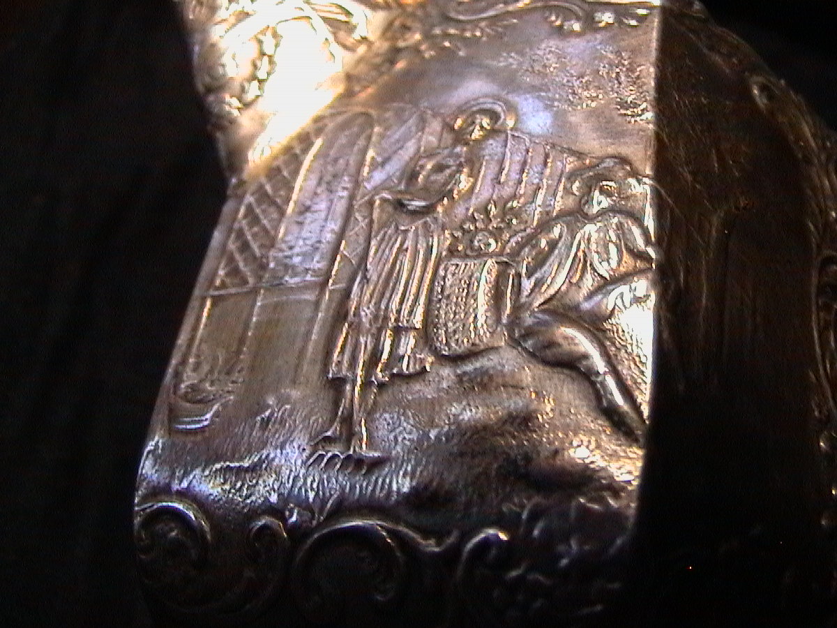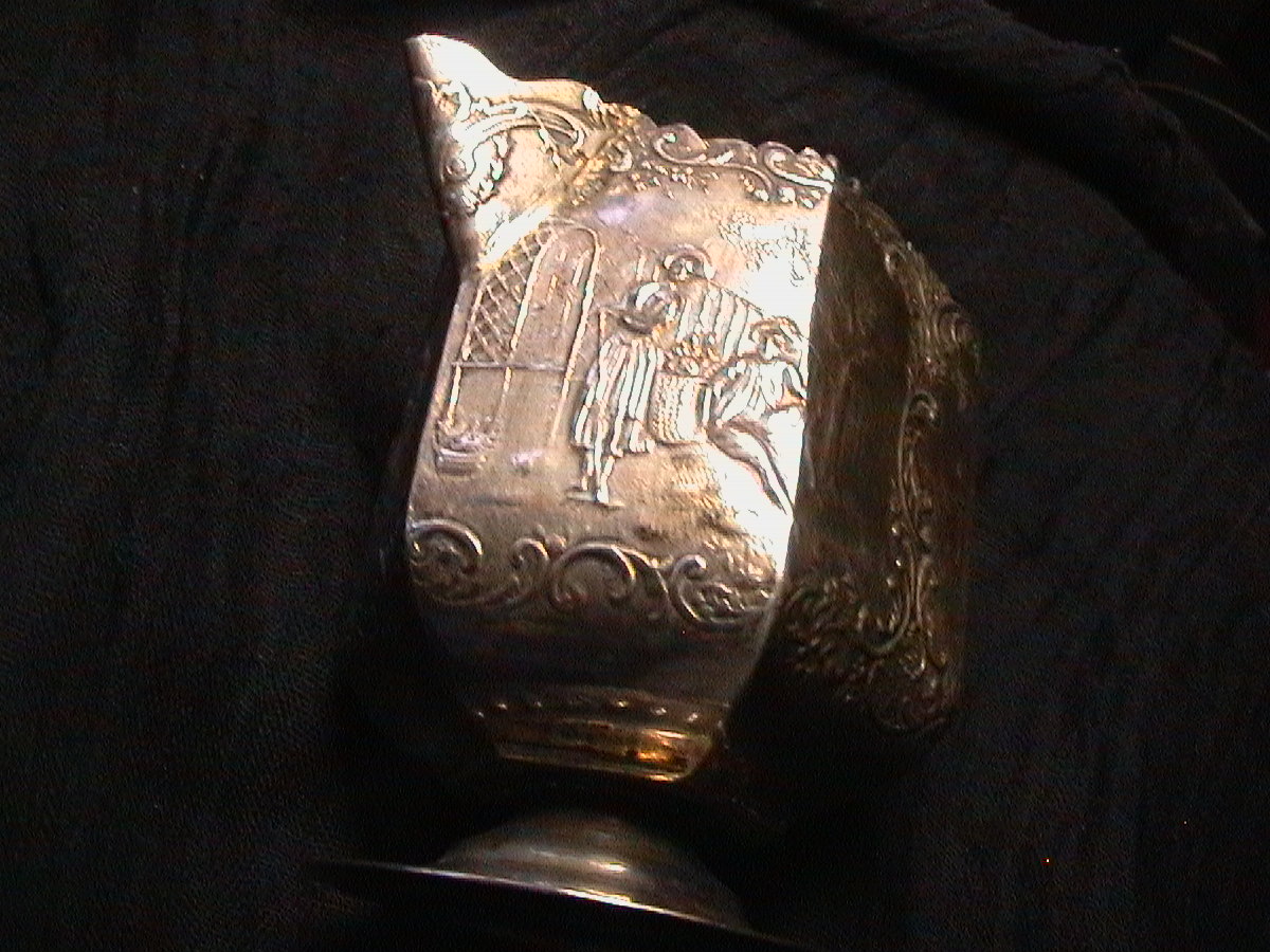 Nackerde Engel aufm Servierteller. Au net schlecht. Flöten und musizieren duans au nu die kleine Zipfelschwinger. Der Bruder von meiner Alten is ja mei Schwager und dem sei Alte hat uns so alte Gießkann aufd heilige Nacht gschenkt. Sappralot jetzt dat uns intressiern, was des überhaupt sein soll? A echts Silber wirds net sei, aber es hat so an Stempel oder wie des nacherd auf Hochdeitsch heißen dät.
