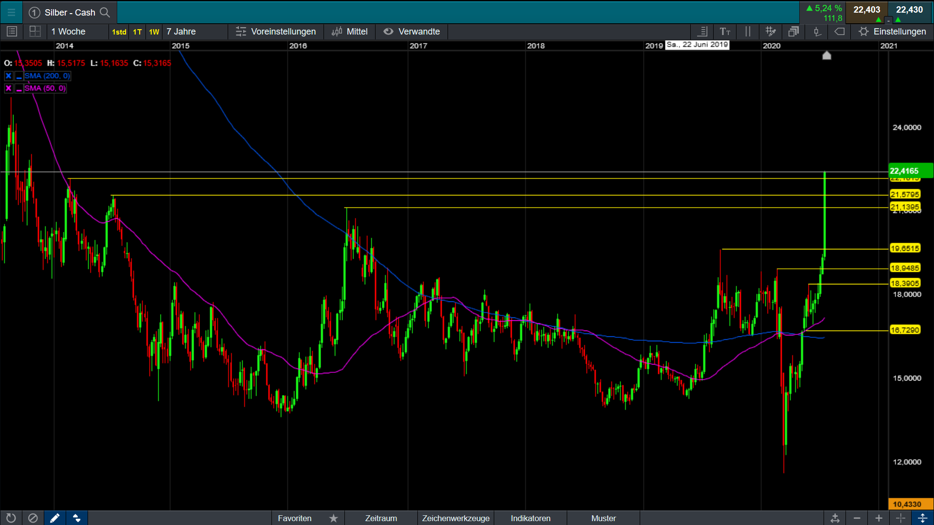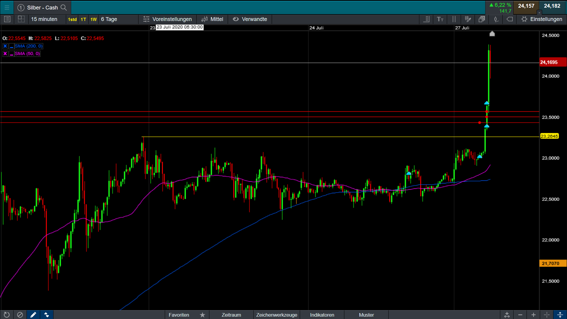 Ich konnte mich etwas erholen übers Wochenende, aber es geht genau dort weiter, wo es am FR aufgehört hat. Da nehme ich weiteren Schlafmangel in Kauf. Wir haben einen brachialen Ausbruch bei Gold im asiatischen Handel, der v. a. auch Silber mitzieht (aktuell + 6.6 % 5.00 Uhr MEZ). Ich handle den Ausbruch in diesen Minuten mittels CFD, da 23 Std. täglich möglich. In bin der Ansicht, diese Tage und Wochen sind historisch, da muss man aus dem vollen Schöpfen.