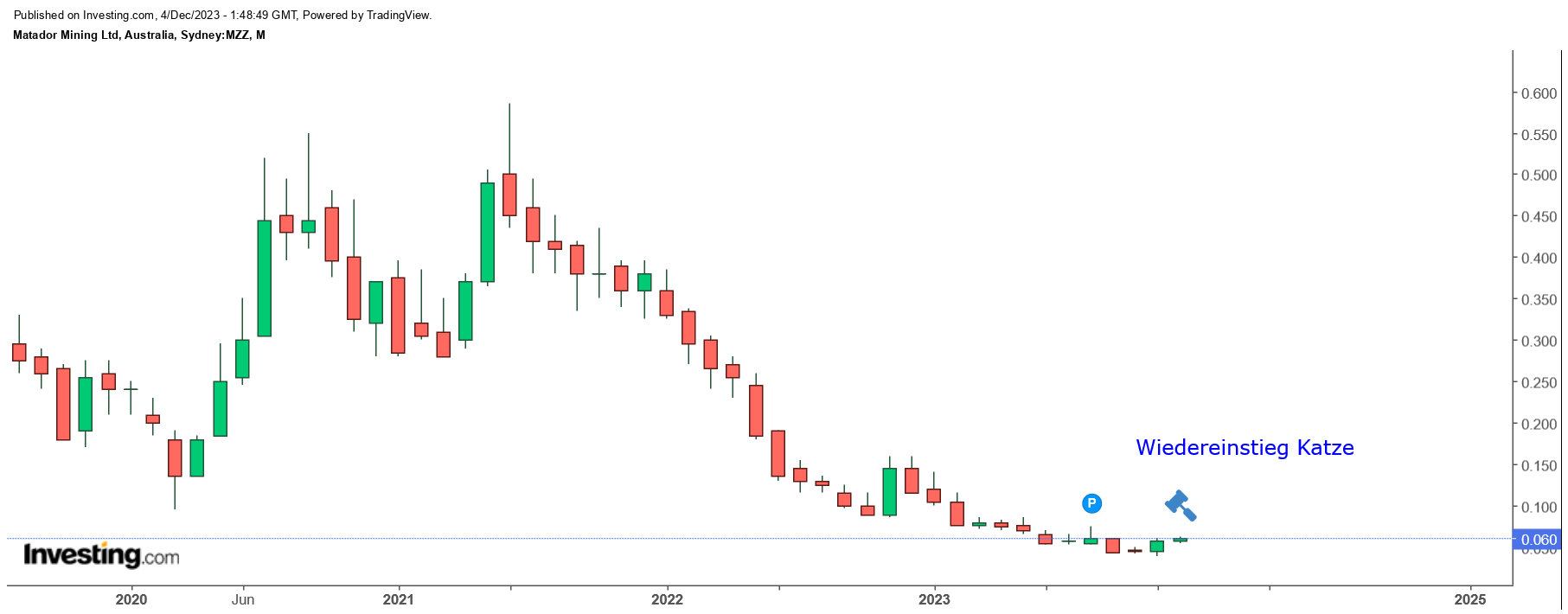 In den letzten Monaten ist wenig gegangen, 2024 ist die PEA zu erwarten. Die MC beträgt 28 Mio CAD. Der Kurs hat sich im Vergleich zu anderen Explorer einigermassen gehalten. Wir sind nahe an einer Bodenbildung. Bin investiert, erhöhe nicht.