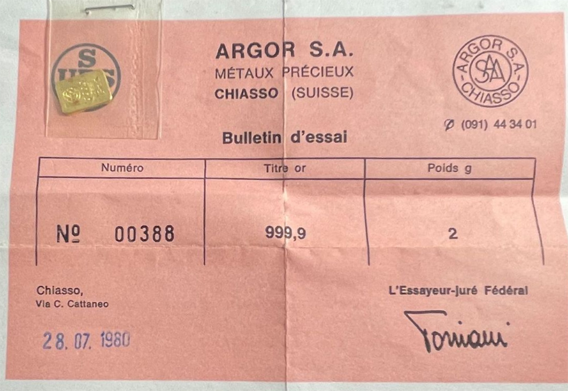 Argor S.A.A. "Premex AG" 1/10oz Gold mit Seriennummer zwischen 000500 und 001000