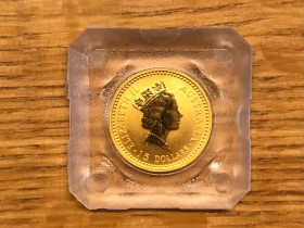 Zum Verkauf kommt eine 1/10 oz Australian Nugget/Kangaroo von 1990 in Originalkapsel für 220 Euro