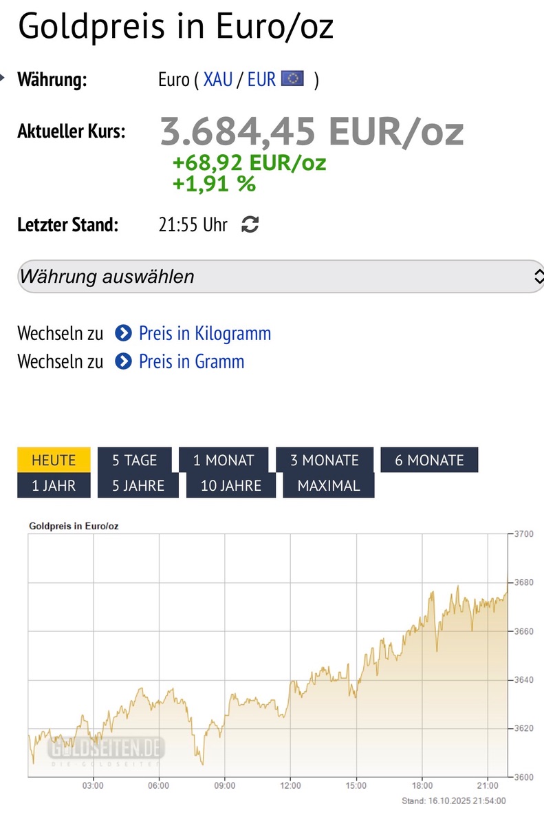 "Gold erreicht die Marke von 4200 Dollar – und der Auslöser dafür dürften zwei Faktoren sein: erstens der weiter sich verschärfende Handelskrieg, und zweitens eine subtile Warnung von Fed-Chef Powell gestern: „starting to see a little tightening in money markets“ – damit meint Powell faktisch: wird sehen Strees-Signale an den Kreditmärkten, weswegen man vielleicht bald mit der Reduzierung der Bilanzsumme (QT) stoppen werde.