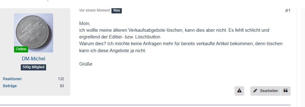 ich wollte meine älteren Verkaufsabgebote löschen, kann dies aber nicht. Es fehlt schlicht und ergreifend der Editier- bzw. Löschbutton.