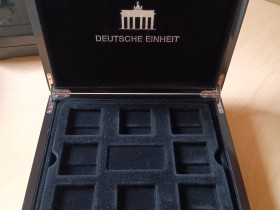 Zwei gebrauchte Etuis in schicker Klavierlack-Optik. Eines trägt das Branding "Deutsche Einheit", das andere nicht.