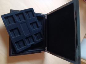 Zwei gebrauchte Etuis in schicker Klavierlack-Optik. Eines trägt das Branding "Deutsche Einheit", das andere nicht.
