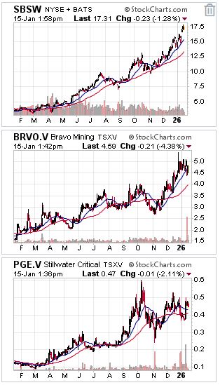 "Ich habe das schon oft im Zusammenhang mit BYN.V. erwähnt. Wer mit Centbeträgen handelt, verpasst Dollarbeträge. Schlimmer noch: Man kann sogar Verluste machen. Aus dem Artikel: Mehrere Anleger haben mir in letzter Zeit von einer Herausforderung in dieser Phase des Bullenmarktes berichtet: Sie können sich nicht dazu durchringen, Aktien zu kaufen, die in der zweiten Jahreshälfte 2025 bereits stark gestiegen sind. Psychologisch gesehen verharren diese Anleger im Preisumfeld des vorherigen Bärenmarktes für Junior-Minenunternehmen und warten auf eine Korrektur, um neue Positionen zu eröffnen oder bestehende aufzustocken. Das Problem ist zweifach: In einem starken Bullenmarkt findet man keinen einfachen Einstiegspunkt zum Wunschpreis – man muss tiefer in die Tasche greifen und das Angebot annehmen. Wenn dann endlich eine echte Korrektur kommt, wird sie so heftig und beängstigend sein, dass man höchstwahrscheinlich nicht kaufen möchte. Das bedeutet, dass man sich bewusst entscheiden muss, ob man am aktuellen Bullenmarkt für Metalle und Bergbau teilnehmen möchte. Lautet die Antwort Ja, besteht der nächste Schritt darin, ein Portfolio zusammenzustellen, das Ihrer Risikotoleranz und Ihrem Anlagehorizont entspricht."