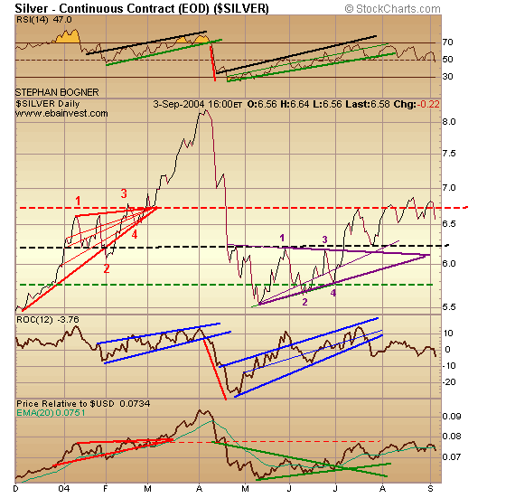 silber versuchte die rote widerstandslinie als unterstuetzung zu nehmen (ex-spitze). bsiher nicht gegglueckt. fuer einen pullback zurueck zur spitze wird es jetzt aber eng, denn bald ist die spitze nicht mehr erreichbar.