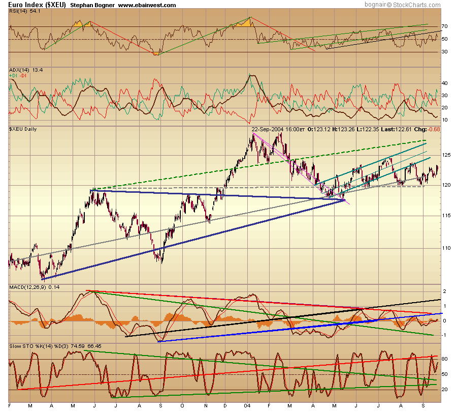 sollte dieses niveau beim euro nicht mehr haltbar sein (USD geht in richtung 91-92 wo der staerkste aller widerstaende sitzt momentan) dann gelten die blauen Unterstuetzunglinien beim Euro. Sollten diese nicht halten, dann gibts erstmal kein halten mehr und bergab.