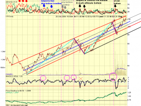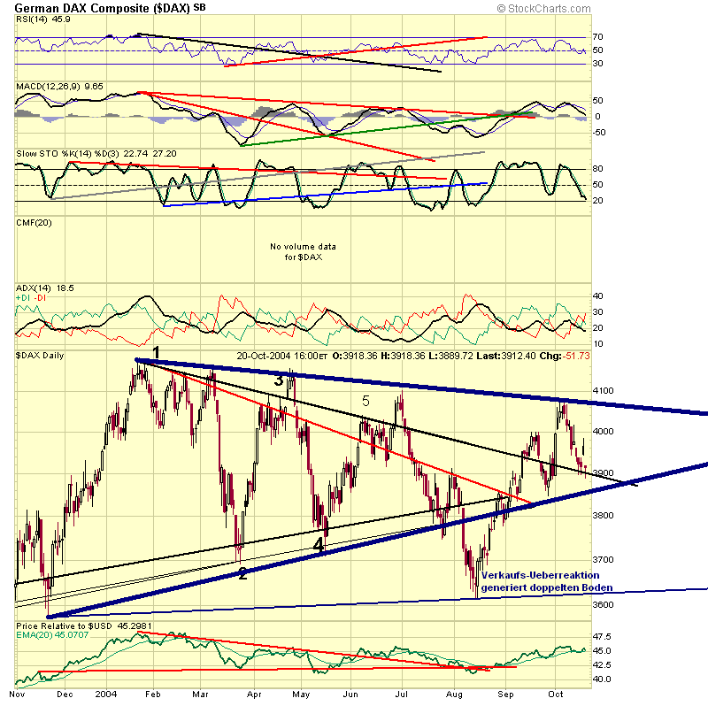 anbei der USD - hat sich noch relativ lange auf der nackenlinie halten koennen, doch der einbruch kam allemal. jetzt vielleicht der pullback zurueck zur nackenlinie - gleichzeitig zum schnittpunkt gruen-rot,