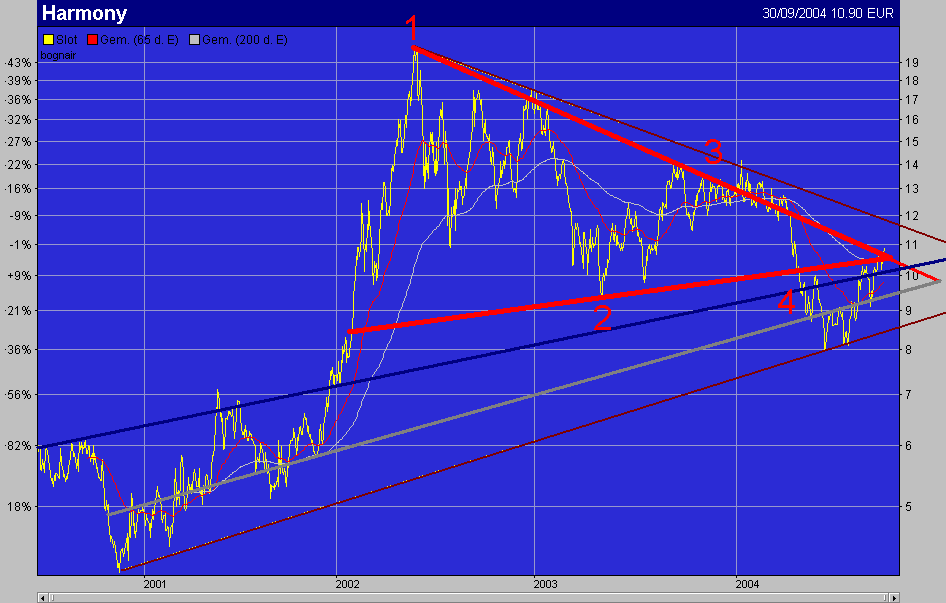 die 4.welle ging zum unteren schenkel und sofort fing die finale impulsbewegung an: gold schwaechelte und harmony drohte nach unten zu thrusten - doch der thrust nach unten hielt nicht und befindet sich seit kurzem wieder auf dem weg zur spitze - welche just in diesem moment erreicht wurde. jetzt geht der kurs hoch, und der dunkelrote widerstandsschenkel muss erst gebrochen werden bevor der thrust beginnen kann. good luck!