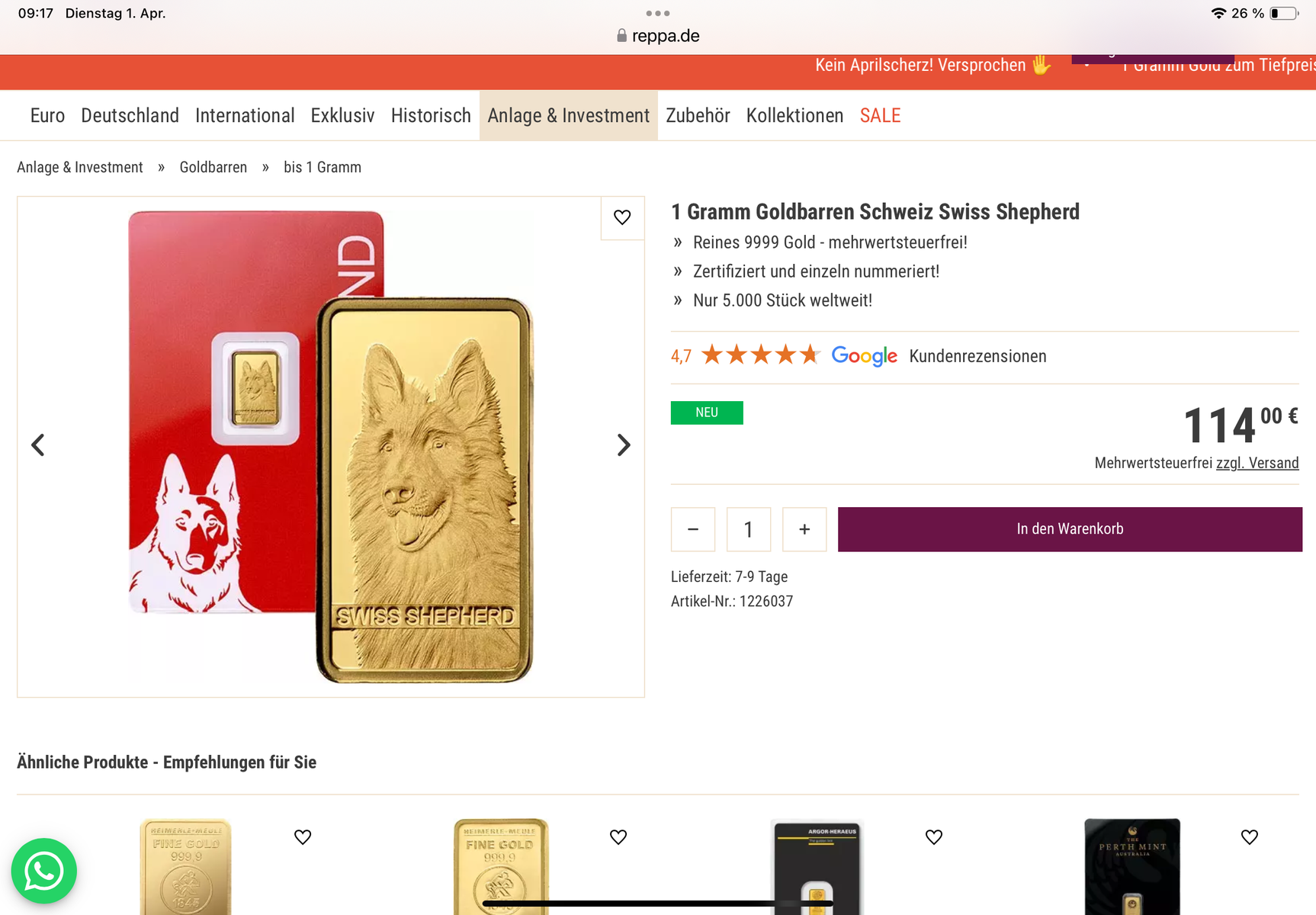 Finde diese Schweizer Schäferhund „Barren“ bei Reppa arg günstig — aufm Zweitmarkt schon teurer.