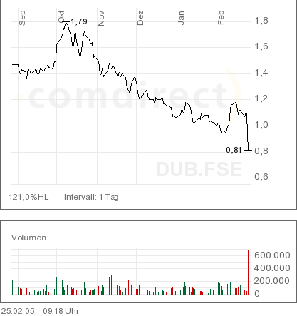 Briefkurs z.Zeit 0,84 E, 11% unter dem bisherigen Tiefststand.