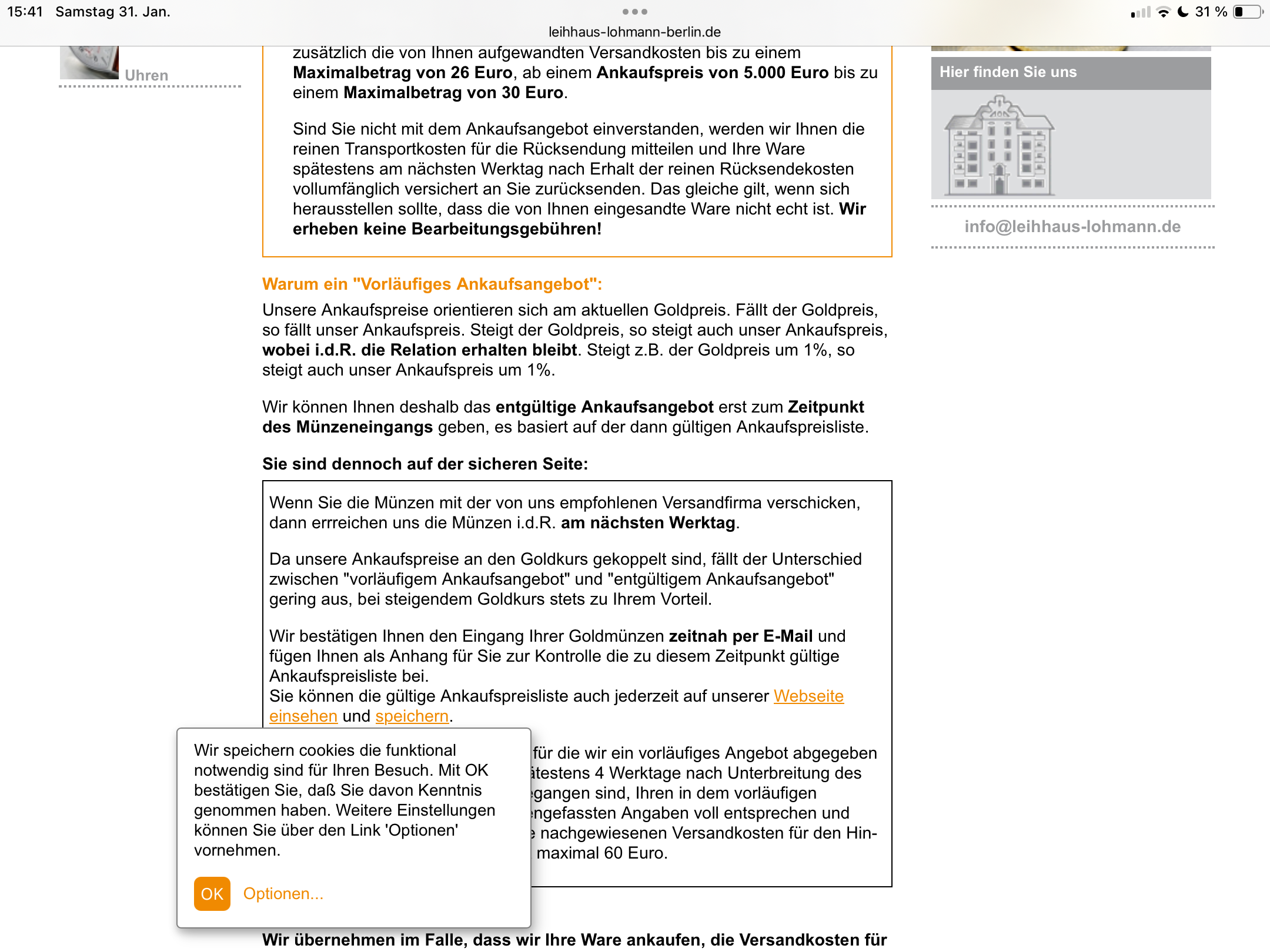nach wenigen Klicks die Meldung, dass der Preis nicht fixiert wird, sondern bei Eingang einseitig festgesetzt wird. Beleg hier: