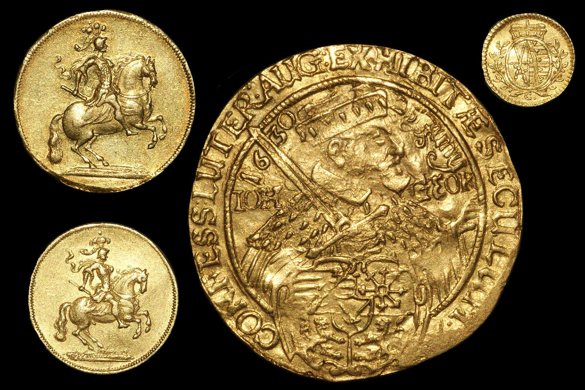-1 Dukat 1695 unter Friedrich August I (dem Starken): Geprägt auf die Abreise des Churfürsten nach Ungarn und das Oberkommanda im Türkenkrieg. Durchmesser 19 mm.