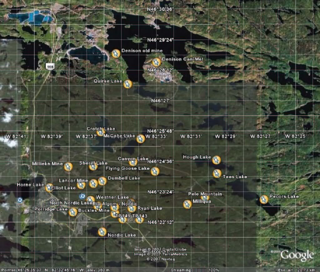 Coole Karte von der Elliot Lake gegend wo Pele seine Sites hat. Die Karte stammt von einem Poster auf Stockhouse