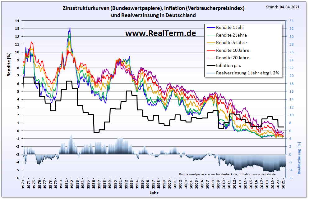 Wenn man nun bedenkt, dass die offizielle Inflation, die für 2020 in D nur mit rund 0,5% ausgewiesen wurde, in 2021 schlagartig auf mehr als 1,5% gestiegen ist, was anliegende Graphik noch gar nicht berücksichtigt, dann wird klar:
