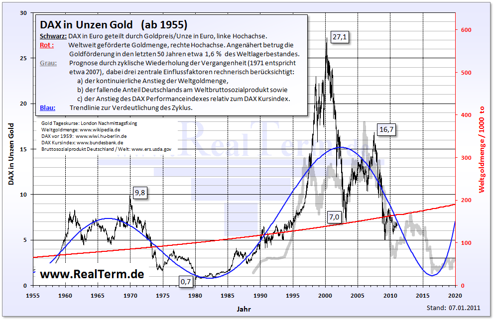Entscheidend ist für mich: Die Outperformance gegenüber Gold (und insbes. auch Silber) war doch eher gering und das Risiko, das er eingegangen ist, für die Outperformance viel zu hoch! Auf welcher Rasierklinge er getanzt hat, wird die DAX-Performance gegen Gold in 2011 zeigen, so denke ich! Letztlich gesteht er sich mit dem Verkauf selbst ein, dass er im DAX keine große Rendite mehr erwartet, wenn er DAX nun in Immos tauscht.