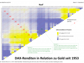 In Aktien gemessen (Dax/Gold) ist Gold übrigens leicht unter dem langjährigen Durchschnitt bewertet.