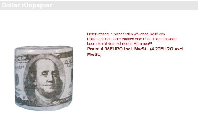 mich wundern ja nur die Leute von denen ich einige kenne die meinen dass Geld immer was wert ist weil sie bis heute immer damit was konsumieren konnten und gleichzeitig rumraunzen dass alles teurer wird. Zusammenhänge in Wirtschaft sind sicher komplex, aber wenn man sich informiert gerät man immer tiefer in den Sumpf und greift sich immer mehr auf den Kopf...was ist das nur für ein Scheisspapierlappen, va. der US-Dollar