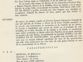 Ich glaube, diese Medalille wurde für die Centennial dem Mexicanischen Feiertag "Cinco de Mayo" , eine Feier der "Heroica Batalla de Puebla, 1862" ca. 1962 geprägt. Eine ähnliche Medaille gibt as von 1953, KM#M91a, 8.333g, 0.9000 Gold "200th Anniversary, Birth of Hildago"