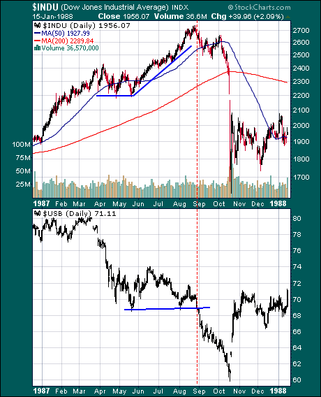 Chart 1 - 1987 stock market crash picture (dow top; bonds below)
