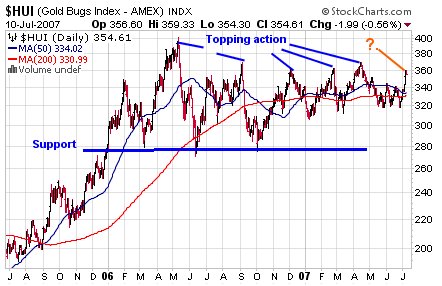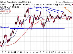 Last week we said that a close above 370 on the Amex Gold Bugs Index (HUI) would cause us to begin buying Richmont Mines Inc. (TSX – RIC; AMEX – RIC) and Australian Gold explorer Goldstar Resources (ASX – GDR). The HUI did close above 370 and we did begin buying but the HUI was unable to hold onto 370 and has subsequently pulled back over the last few days.