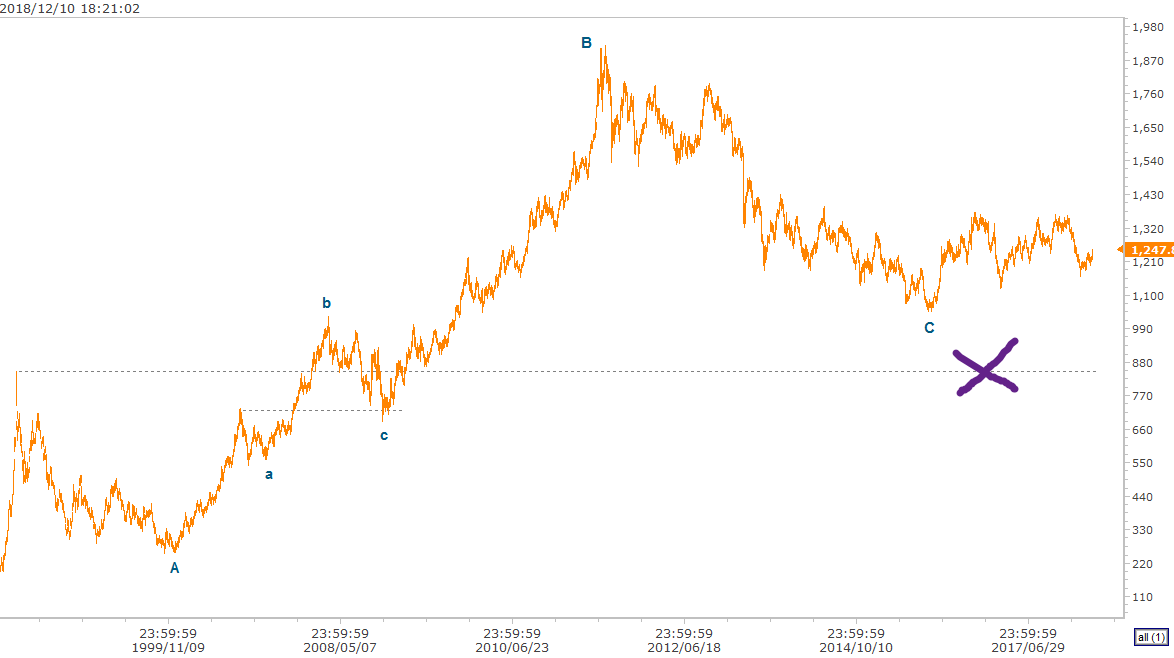 Wo würde der Goldpreis landen, wenn lediglich 1.000 Tonnen netto aus dem Goldmarkt aufzukaufen wären? Dafür braucht es Zeit und eine sehr gekonnte Steuerung der Notierungen. Gemessen an den Umsätzen in der letzten Goldhausse der beschriebenen Art sind die spekulativen Geschäfte zu eliminieren, also das tägliche Goldtrading und ebenso sämtliche Umsätze im Termingeschäft. Indes: Setzt sich ein solcher Trend durch, gibt es Mitläufer. In diesem Falle ETF-Fonds, so wie in der zitierten Goldhausse, als am Ende der größte ETF-Goldfonds über einen Bestand von alleine 3.000 Tonnen verfügte. Diese wurden im Übrigen in der beschriebenen Konsolidierung deutlich reduziert, in etwa halbiert. Mithin sind mindestens zwei große Parteien demnächst im Markt tätig, wenn die Internetwährung Libra ihr Ziel erreichen will, eine seriöse Währung zu sein. 3.000 $ als Ziel wären etwas mehr als 100 %. [...] 20 % p. a. sind nicht aufregend, aber entsprächen nur dem Vorbild der zwei Vorgänger.