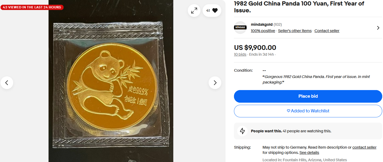 In seinem Shop finden sich derzeit folgende Stücke, die genau in Ihr Raster fallen:- China Panda 2025/2026 Gold Black Empire: Werden als "sofort lieferbar" für ca. 165 € - 169 € beworben.